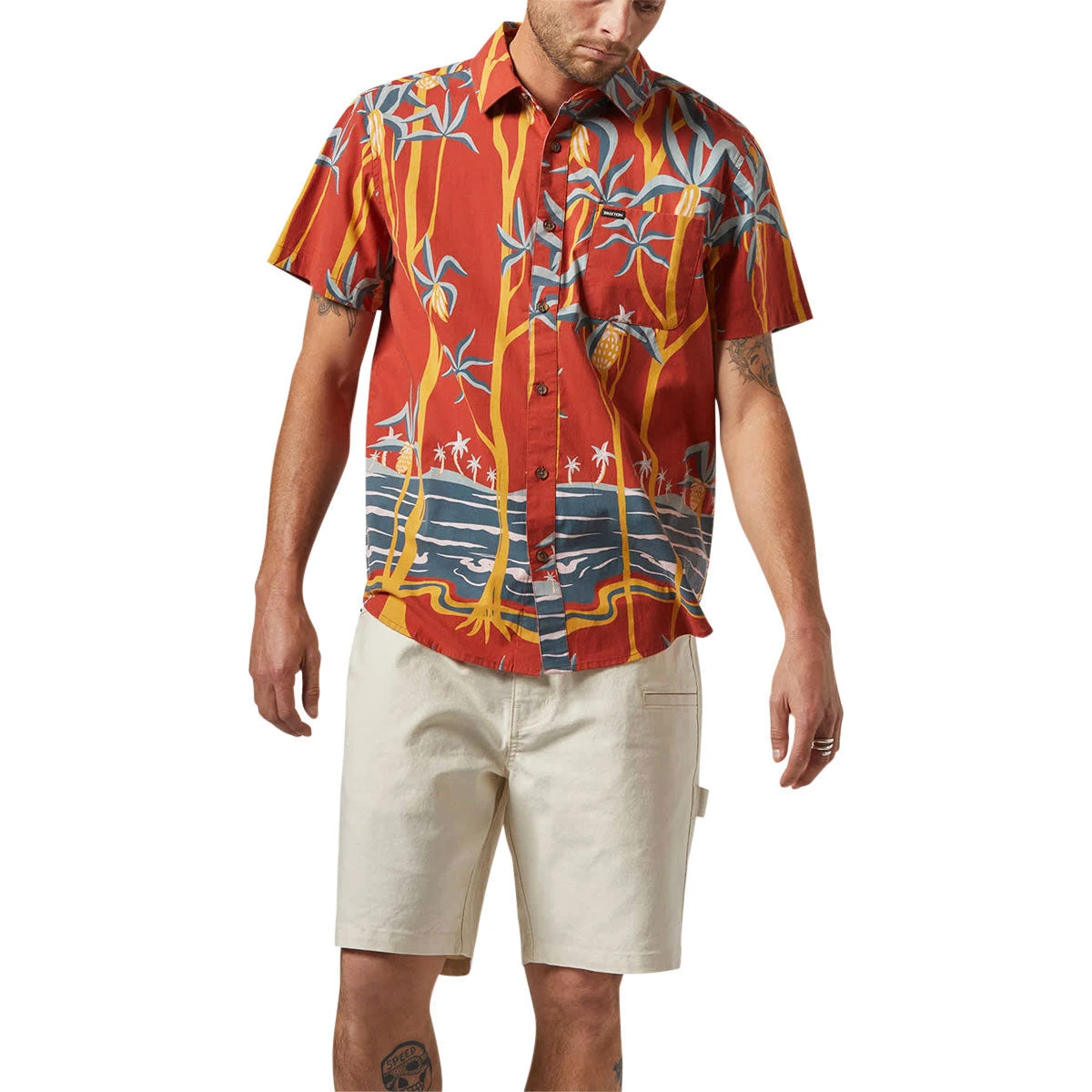 Brixton Charter Print Shirt – Dark Red Scenic Trip