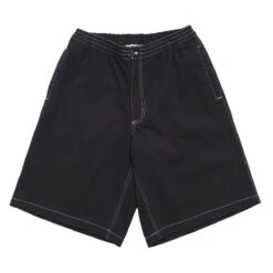Metalwood Contrast Stitch Elastic Waist Shorts – Black