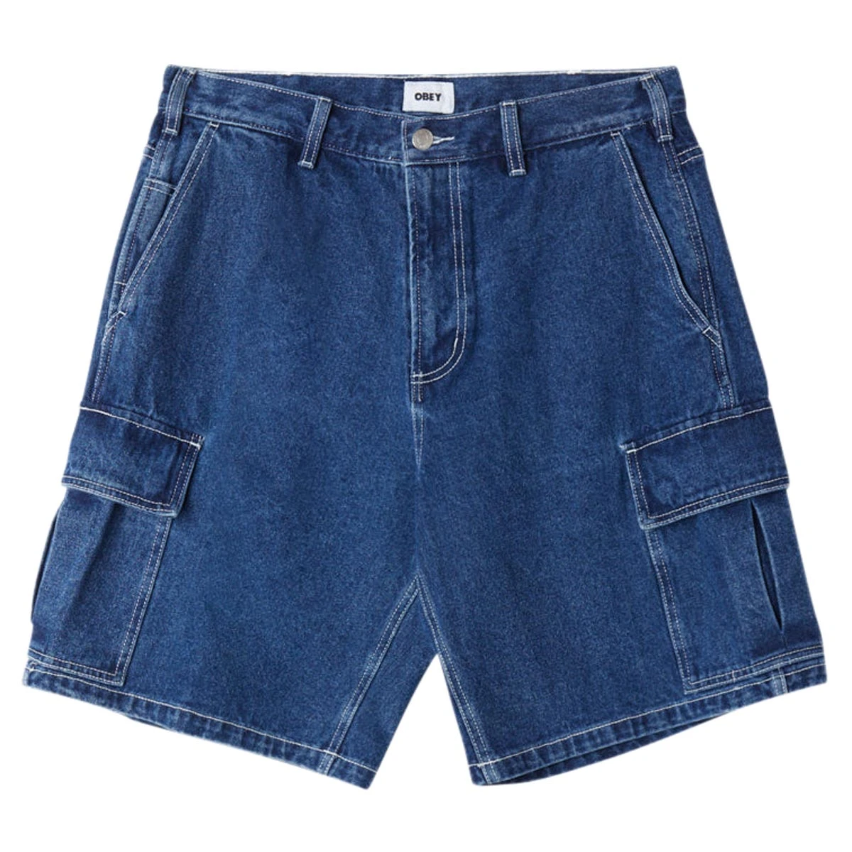 Obey Bigwig Baggy Denim Cargo Shorts – Stone Wash Indigo