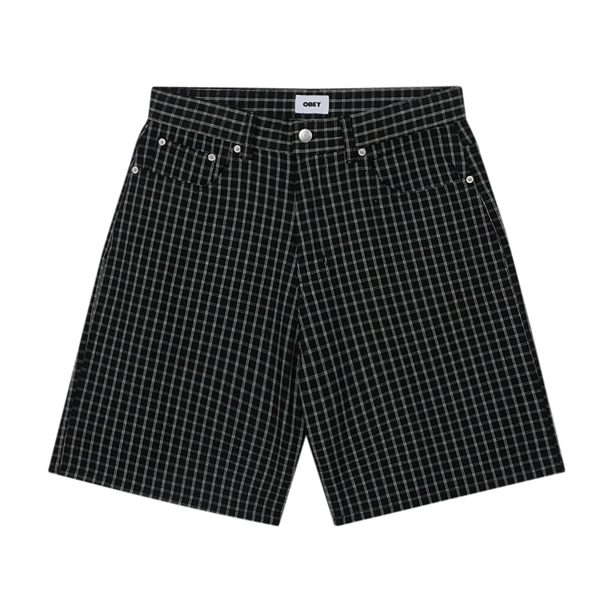 Obey Plaid Baggy Denim Shorts – Black Multi