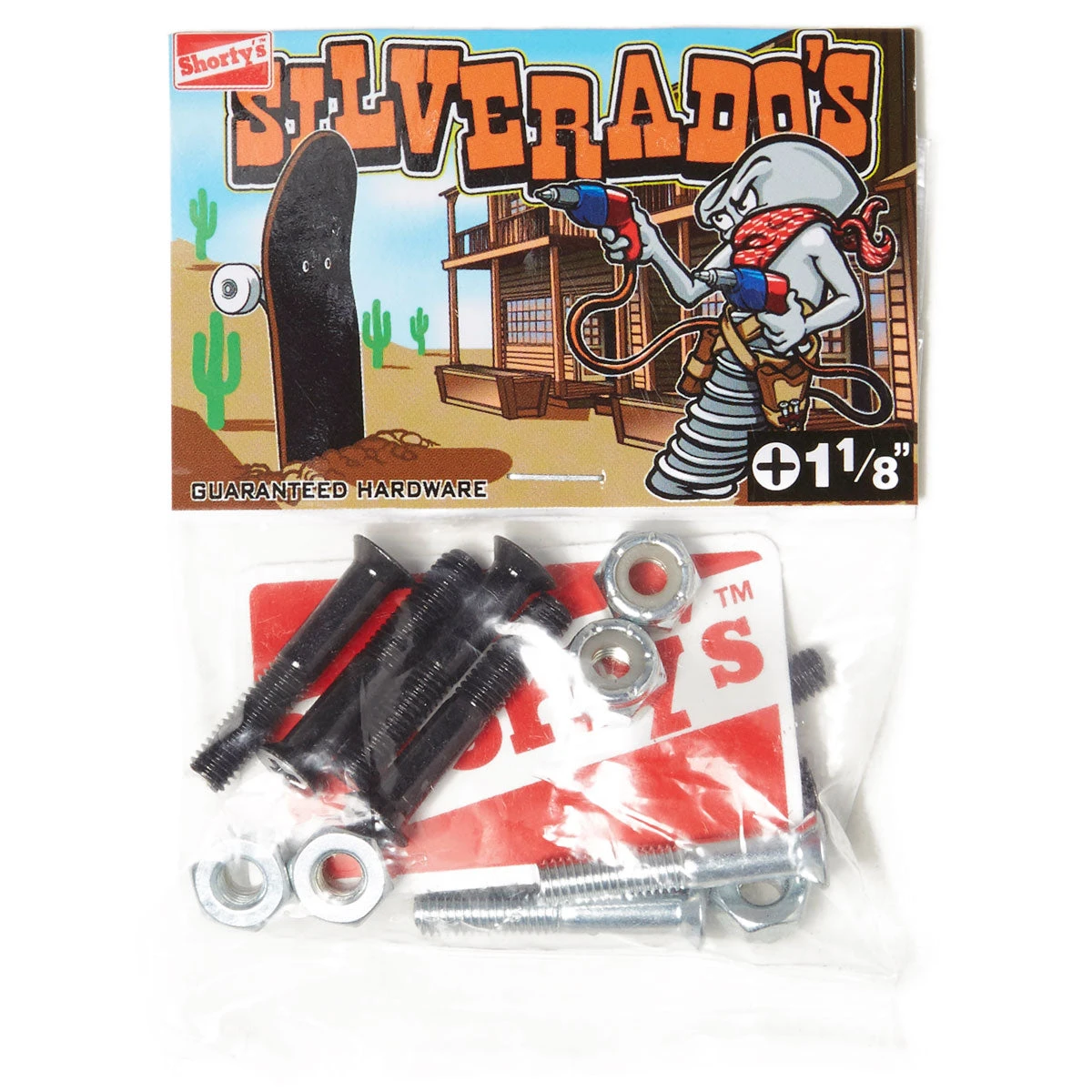 Shorty’s 1.125″ Silverado Hardware is some of the best in the business. The flat head bolts will fit any board seamlessly. And two silver bolts will help you easily identify your nose or tail at a glance.