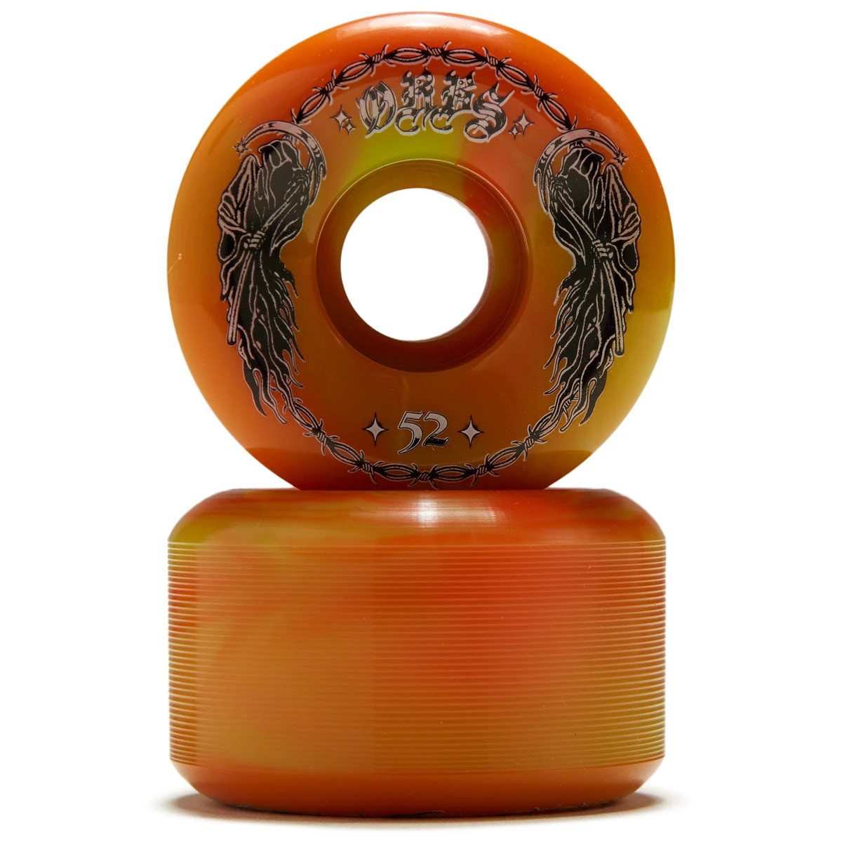 Welcome Orbs Specters ’23 Conical 99A Skateboard Wheels – Green/Orange Swirl – 52mm